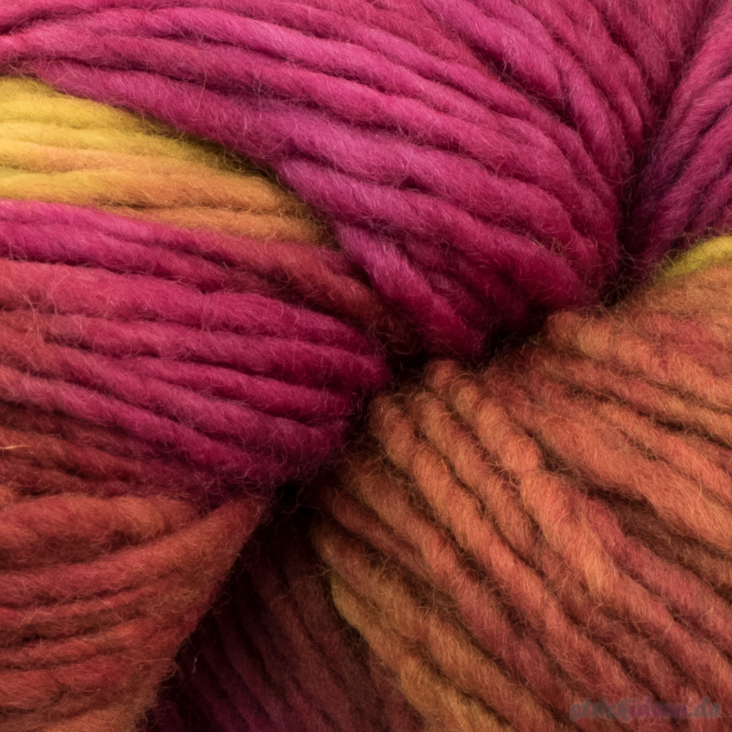 Pflegehinweise:Die handgefärbten Malabrigo-Unikate können noch etwas Farbe abgeben. Wenn Sie dunkle und helle Farben miteinander verstricken, empfehlen wir diese vorher getrennt im Wasser auszuspülen.
