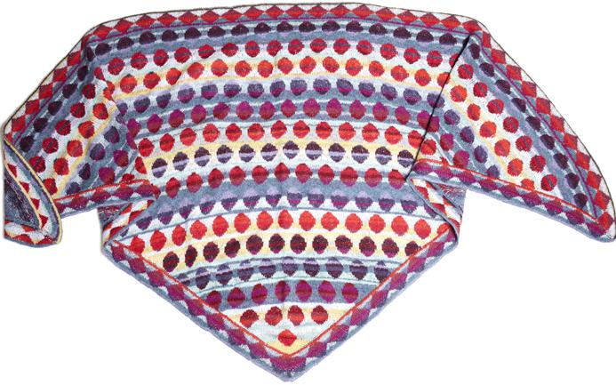 Die blaue Variante des Bonbontuchs von Christel Seyfarth. Rot-Violette Bonbons zieren stimmig das hellblaue Dreieckstuch. Das einfache Muster erleichert Anfängern das Stricken.