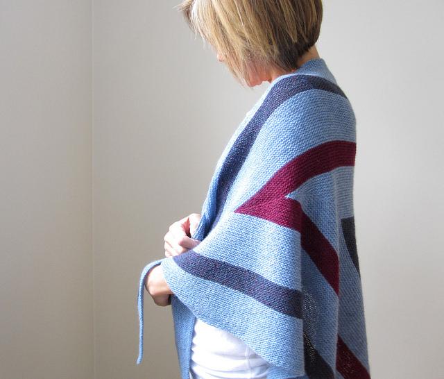 Das Strickkit enthält genug Wolle für ein Tuch mit einer Größe von 160 x 80 cm. Die Anleitung beschreibt ebenfalls ein kleineres Tuch von 120 x 60 cm sowie die 2-farbige Variante. Die Abbildung hier zeigt das große Tuch.